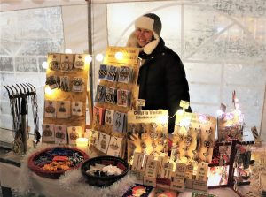 Jarna-Erika Keihänen oli myymässä C’est la Viekkaan tuotteita Pyhäniemen joulutorilla. Kuva: Antero Alkkiomäki.
