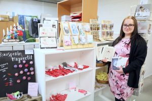 Pienessä käsityö- ja lahjatavarapuodissaan hän myy tällä hetkellä parkanolaisten More Joyn ja Hensuan, kihniöläisen C’est la Viekkaan ja tamperelaisen Pikku Pingviinin sekä Kuusateen tuotteita. Tulossa on piakkoin pari tuotemerkkiä lisää.