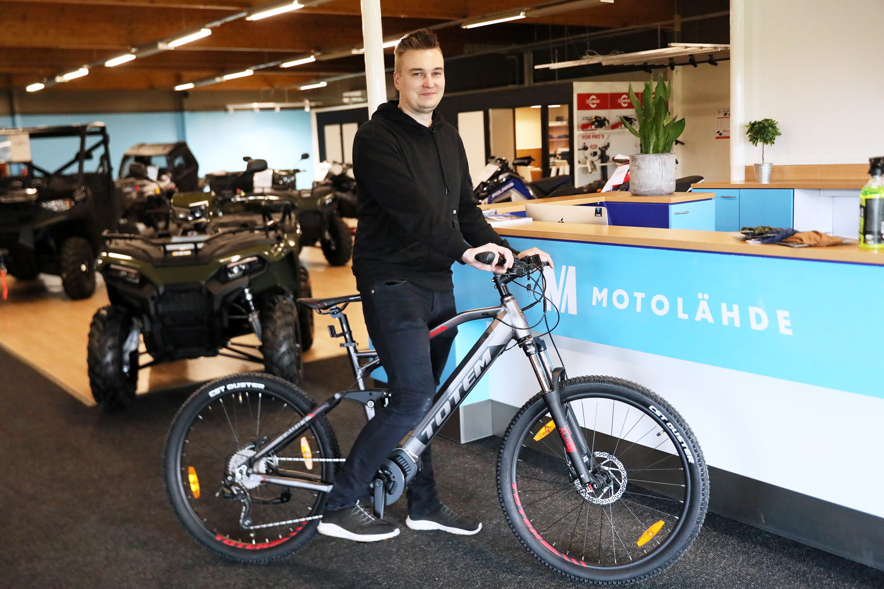 Parkanossa voi nyt vuokrata sähköpyörän Motolähde Oy:stä. Pyöriä on aluksi yksi, mutta toinen on jo tilauksessa. Kauppias Joni Seilo toteaa kehittävänsä toimintaa kysynnän mukaan.